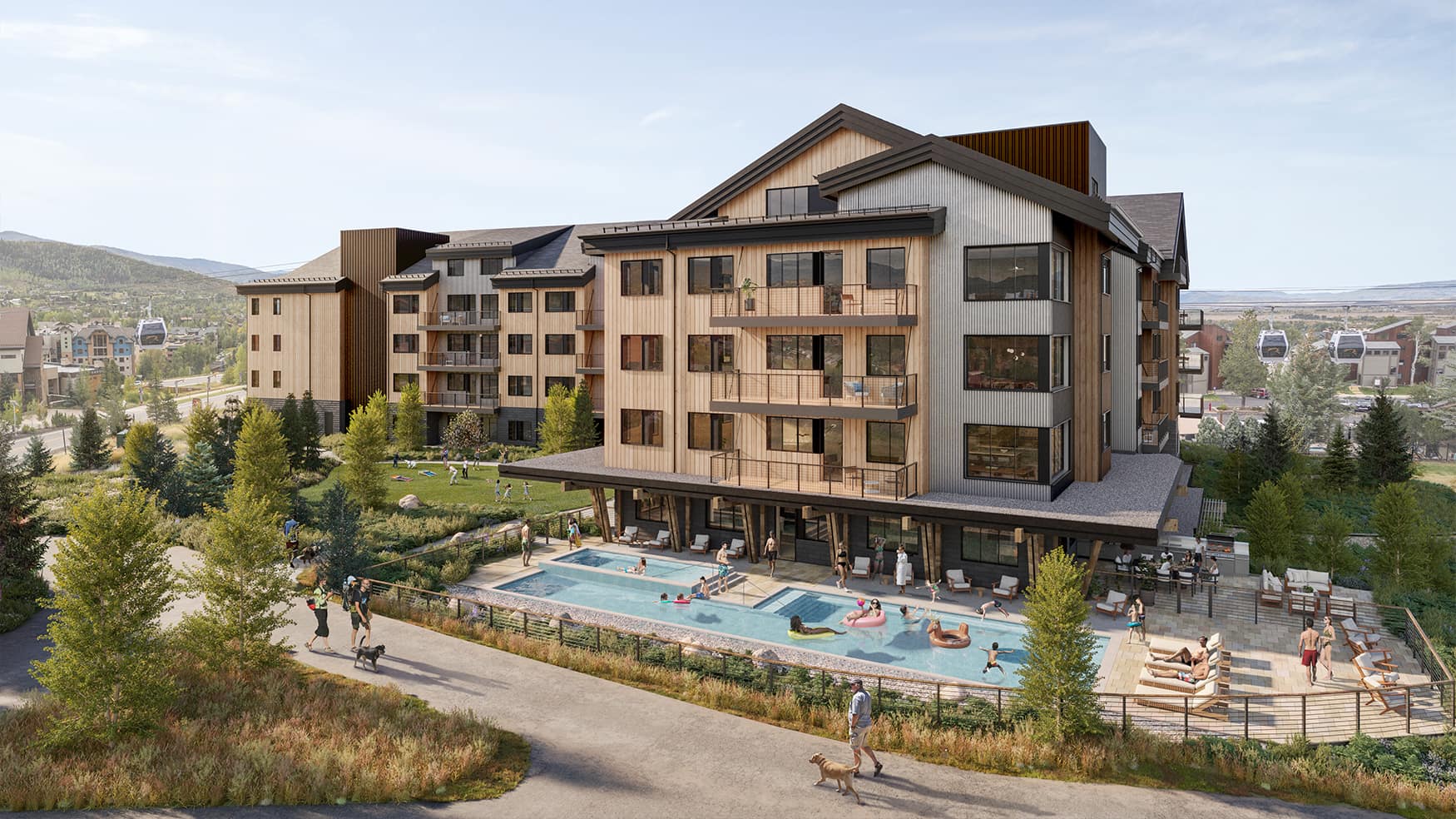 - The neighborhood amenities include a private community gondola, heated pool, hot tubs, walking paths and integrated resort-style feel. steamboatlodgingcompany.com+1